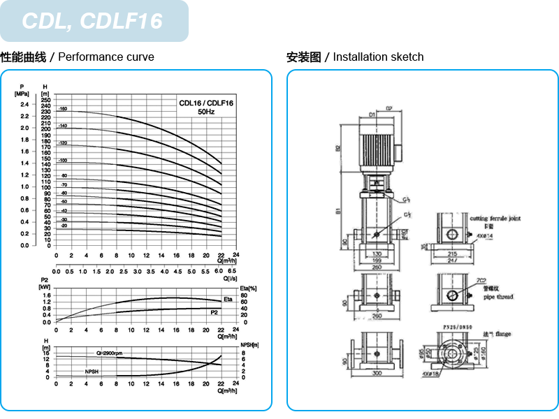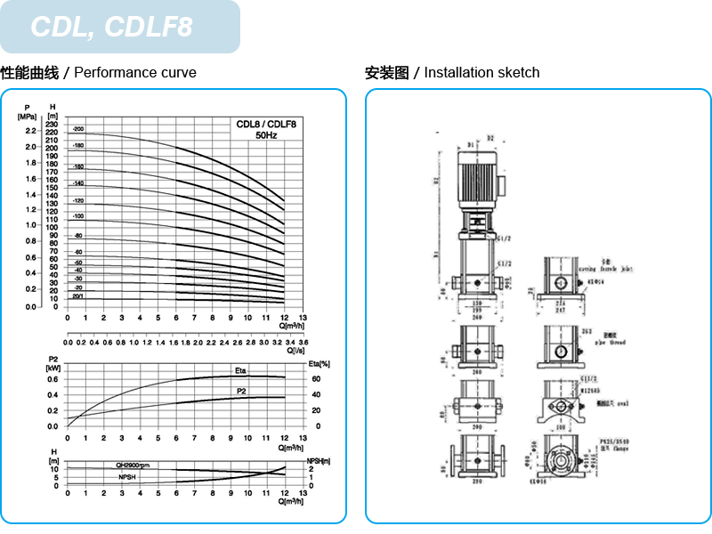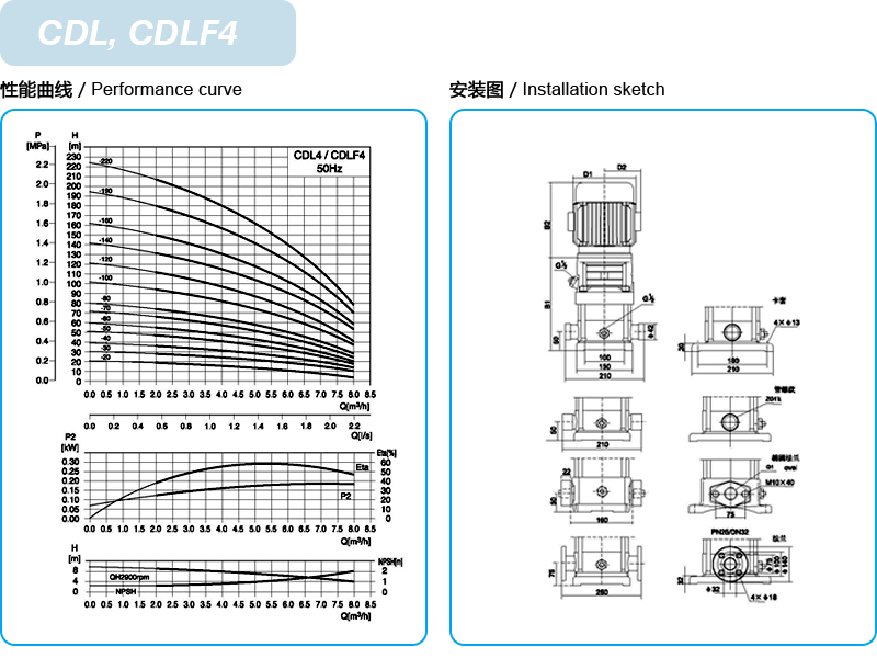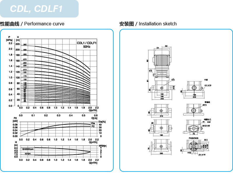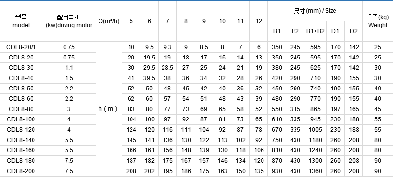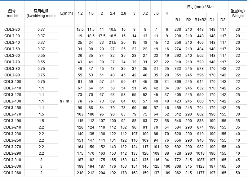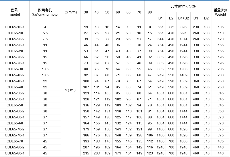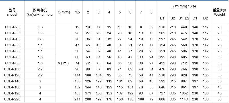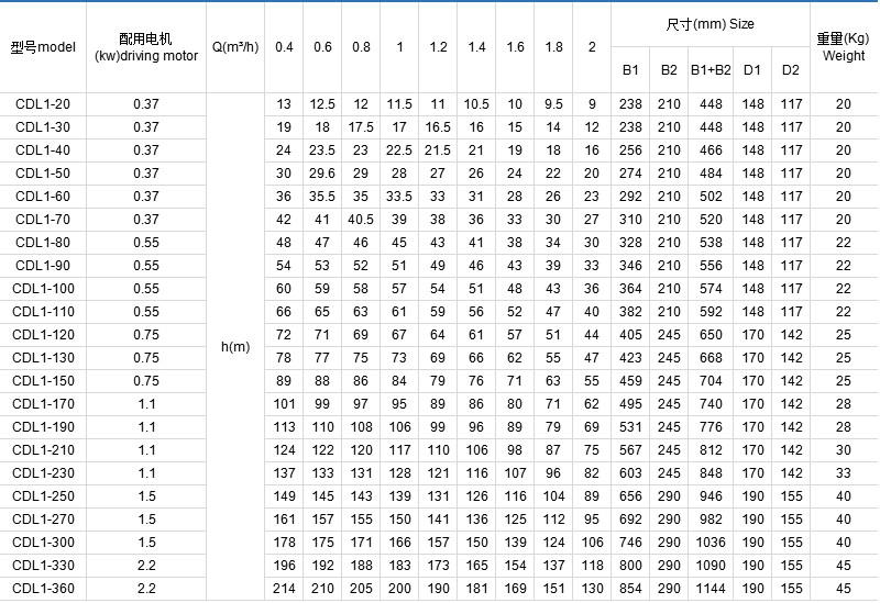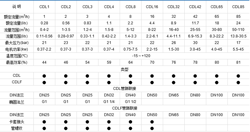 CDL/CDLF是一种多功能产品,可以输送从自来水到工业液体的各种不同介质,适应于不同温度、流量和压力范围,CDL适用于无腐蚀性液体,CDLF适用于轻度腐蚀性液体。