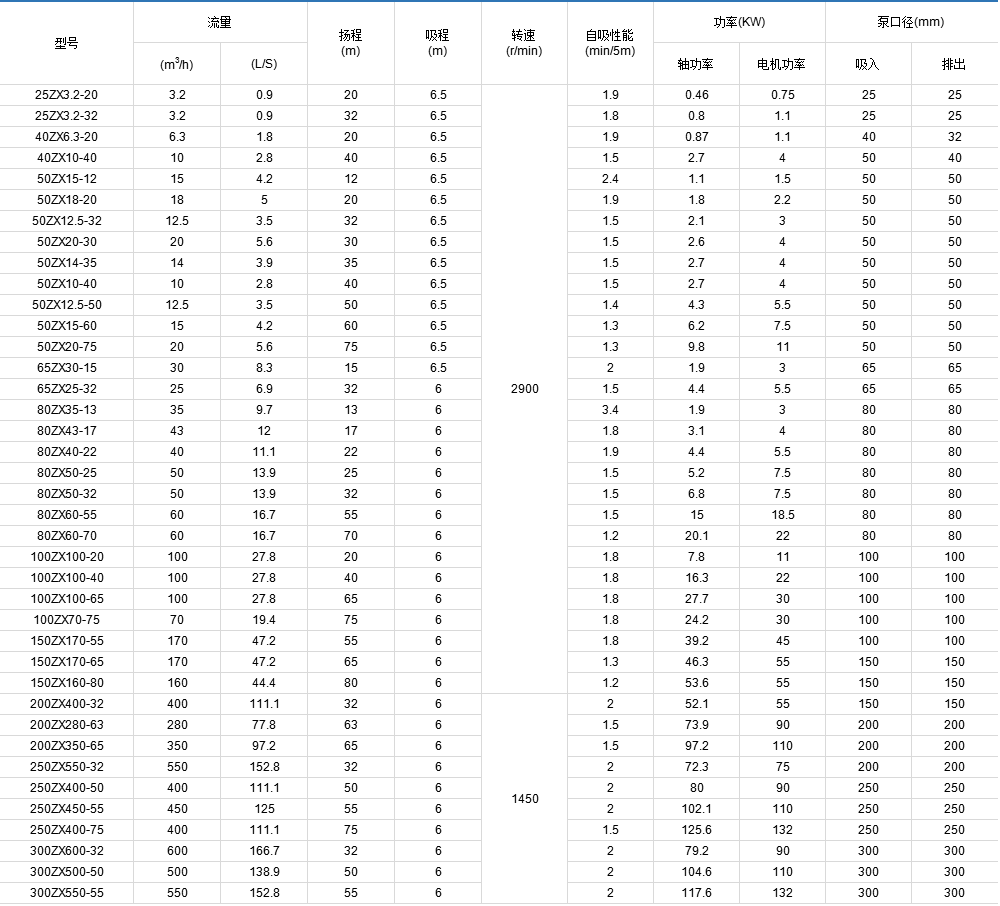 本单位生产的ZX系列自吸泵是根据国内外有关技术资料经吸收、消化、改进后研制而成的节能泵类产品。该泵属自吸式离心泵,它具有结构紧凑、操作方便、运行平稳、维护容易、效率高、寿命长,并有较强的自吸能力等优点。管路中不需安装底阀,工作前只需保证泵体内储有定量引液即可。因此简化了管路系统,又改善了劳动条件。