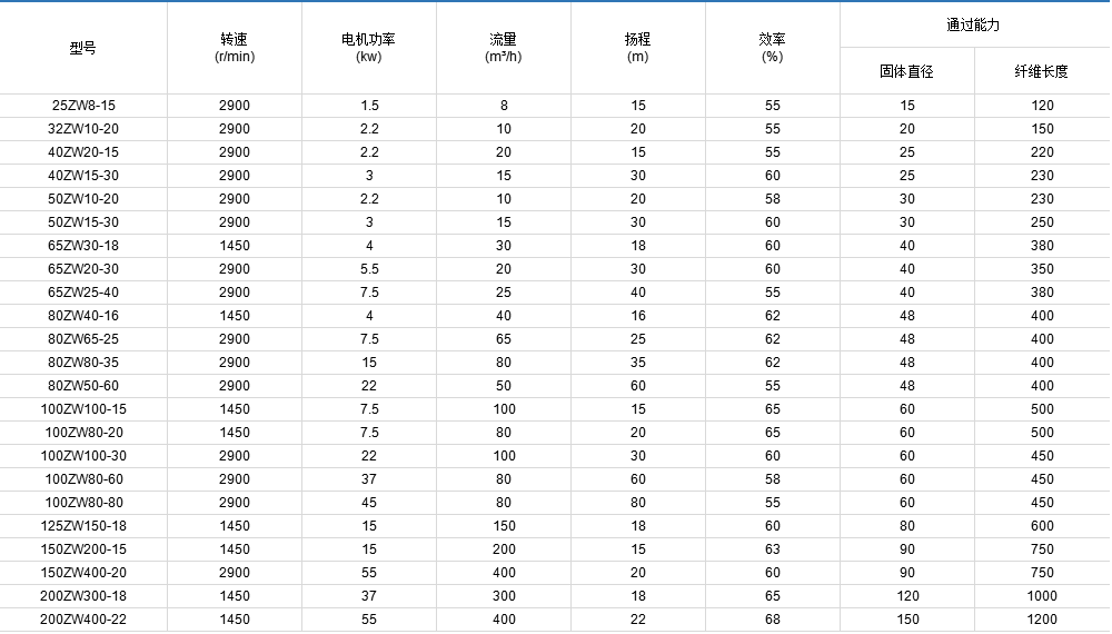 ZW型自吸无堵塞排污泵是本厂工程技术人员吸收国外技术,结合我国机电行业的实际情况而研制成功的。该泵通过叶轮 和泵体的新颖结构,既可象一般自吸泵那样不需要安装底阀,又可以通过较大颗粒和较长的纤维,具有广阔的应用市场和发展前景。