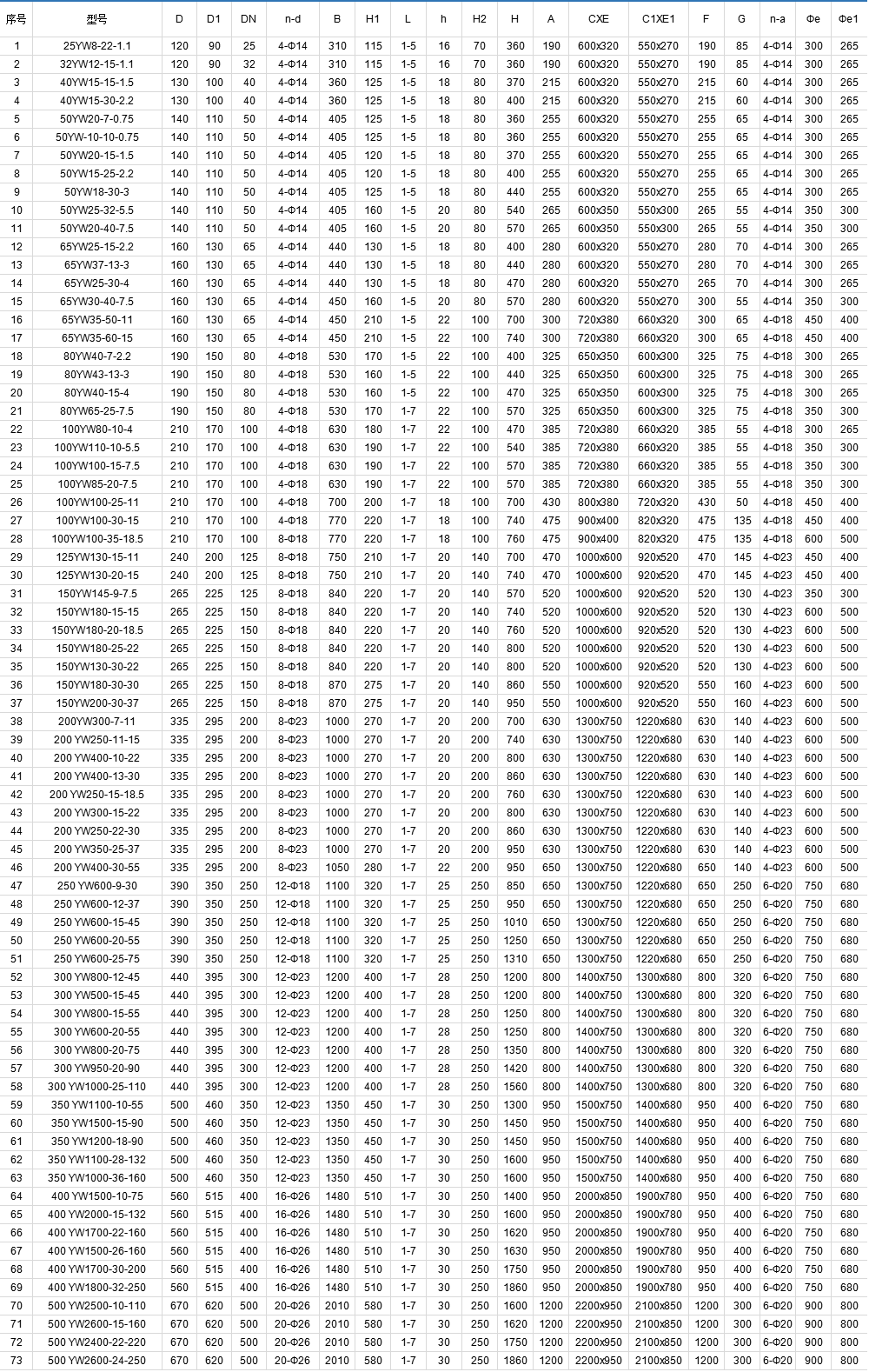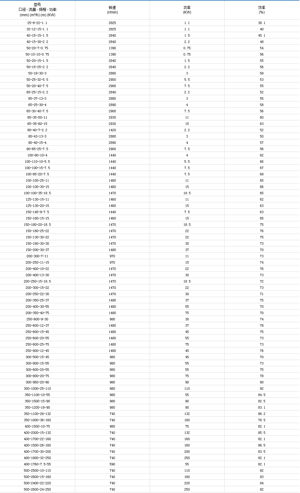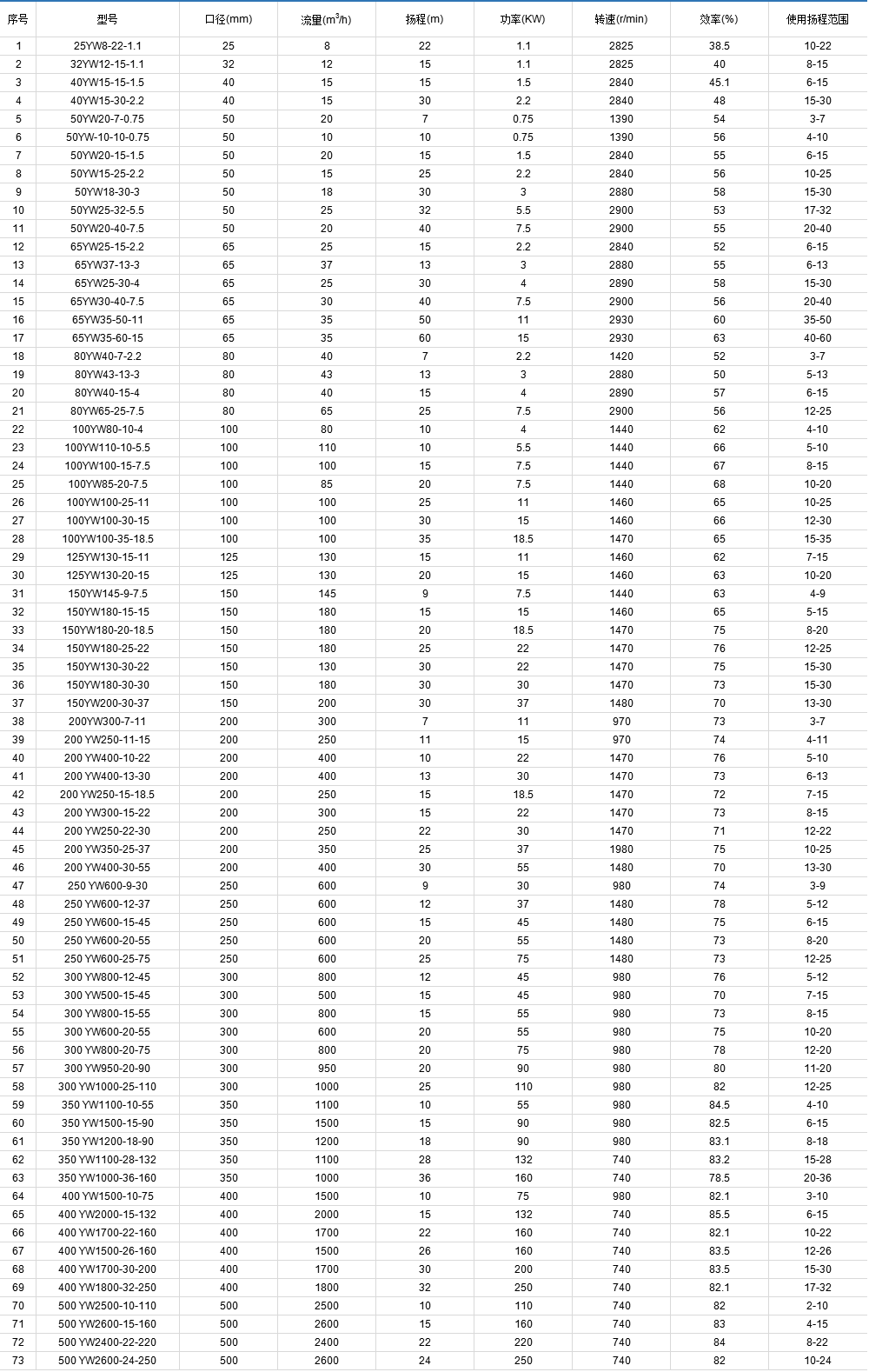 YW、YW、LW、GW型无堵塞排污泵性能参数