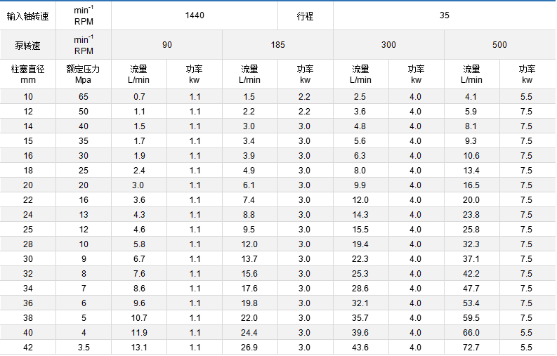 ◆ 你选型时表中流量不合适,可用电磁调速,变频调速,变换柱塞直径来调节流量,满足选型需要。