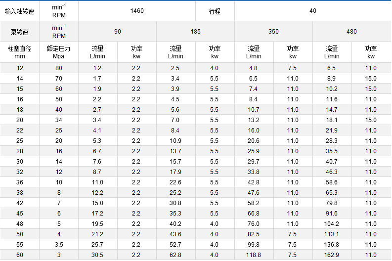 ◆ 你选型时表中流量不合适,可用电磁调速,变频调速,变换柱塞直径来调节流量,满足选型需要。