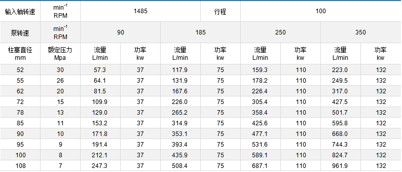 表中技术参数作为选型参考,每个品种的泵都装有安全调压阀,泵的压力可任意调节。
