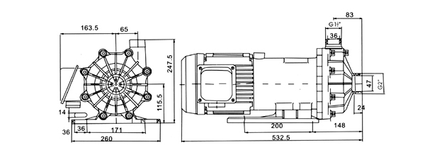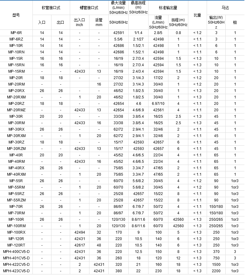 ◆ 螺纹接口式泵性能及安装尺寸同软管接口式泵;