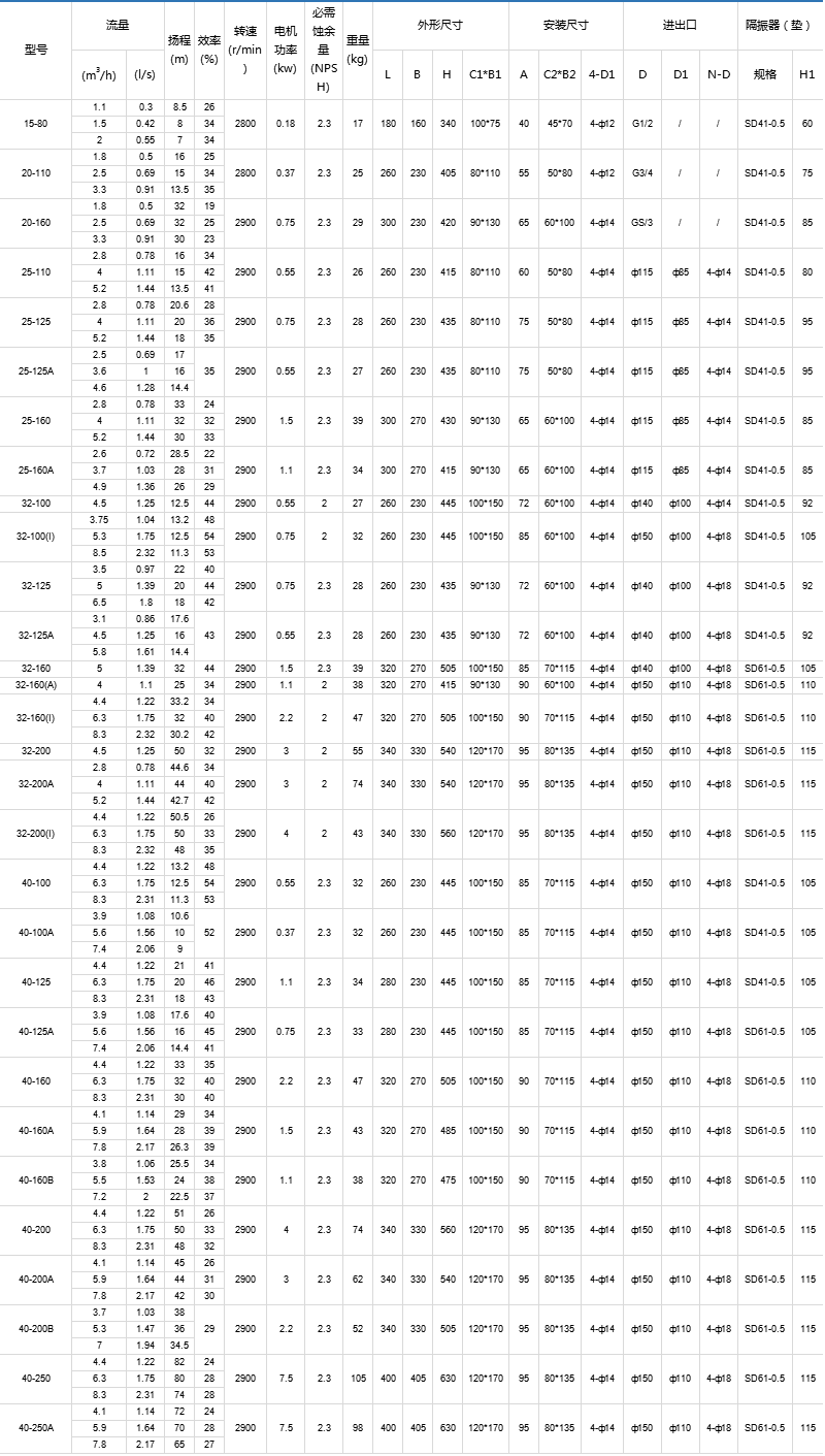 1、泵为立式结构,进出口口径相同,且位于同一中心线上,可像阀门一样安装于管路之中,外形紧凑美观,占地面积小,建筑投入低,如加上防护罩则可置于户外使用。