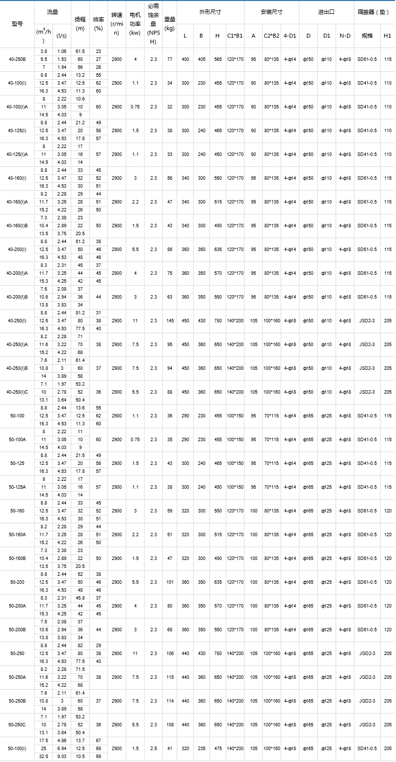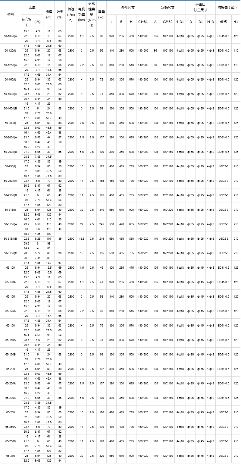 1、吸入压力≤1.0MPa,或泵系统最高工作压力≤1.6MPa,即泵吸入口压力-泵扬程≤1.6MPa,泵静压实验压力为2.5MPa。订货时请注明系统工作压力,泵系统工作压力大于1.6MPa时应在订货时另行提出,以便在制造时泵的过流部分和联接部分采用铸钢材料。